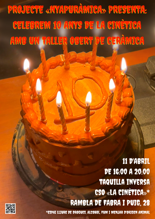 Serà una activitat social conjunta dels tallers Nyapiràmica i Litoràmica per crear, entre totes, el rètol de La Cinètika amb rajoles. Les enganxarem de dues setmanes més tard, a finals d’abril, perquè les peces han de passar per dues coccions.