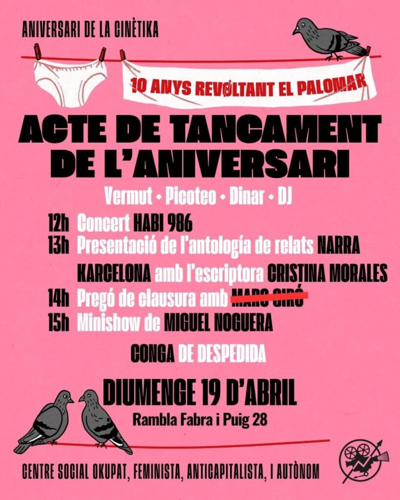 Vine a la conga de comiat i celebrar els 10 anys de resistència de La Cinètika!