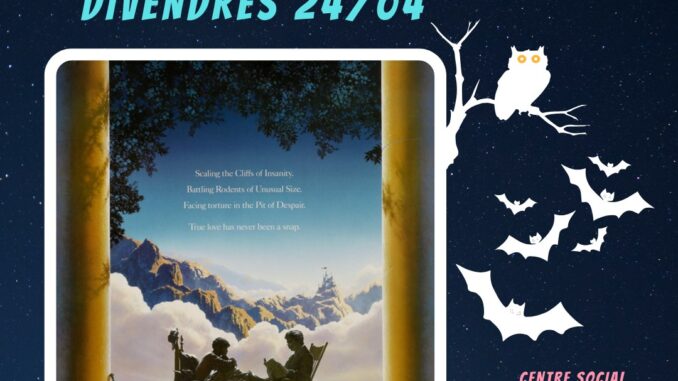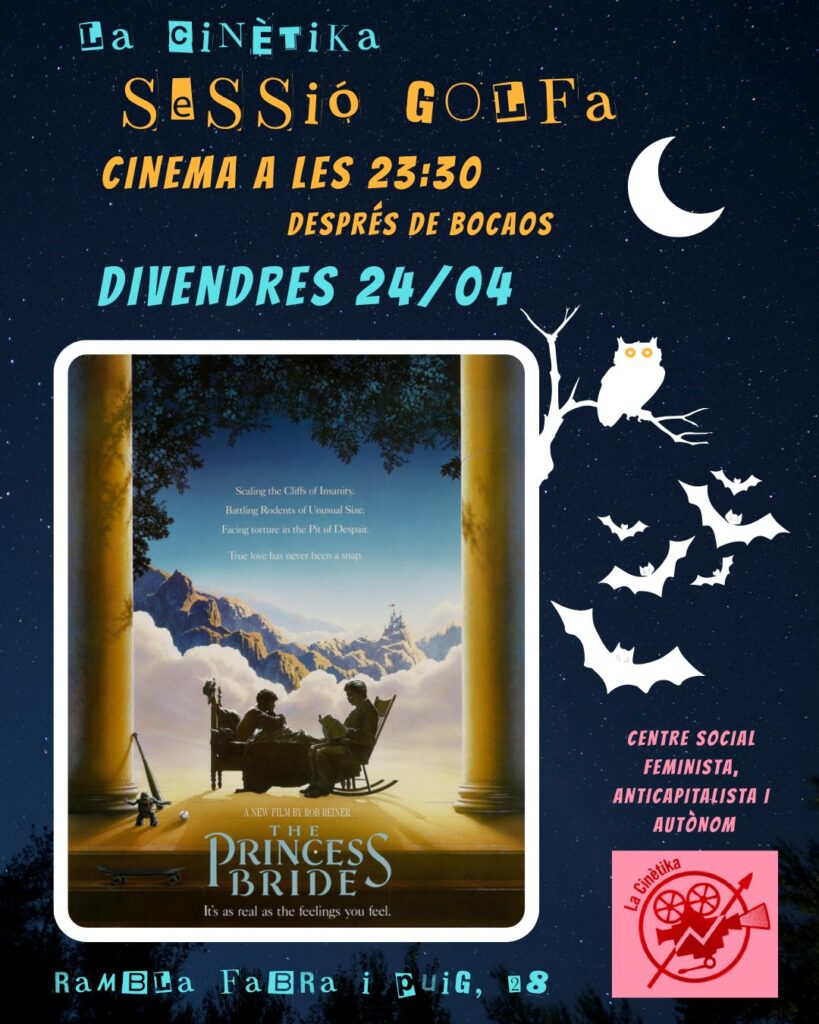 El divendres 24 d’abril a les 23:30h, Sessions Golfes de La Cinètika projectarem The Princess Bride (La princesa promesa), dirigida per Rob Reiner, de 98 minuts de durada, VOSE (1987).