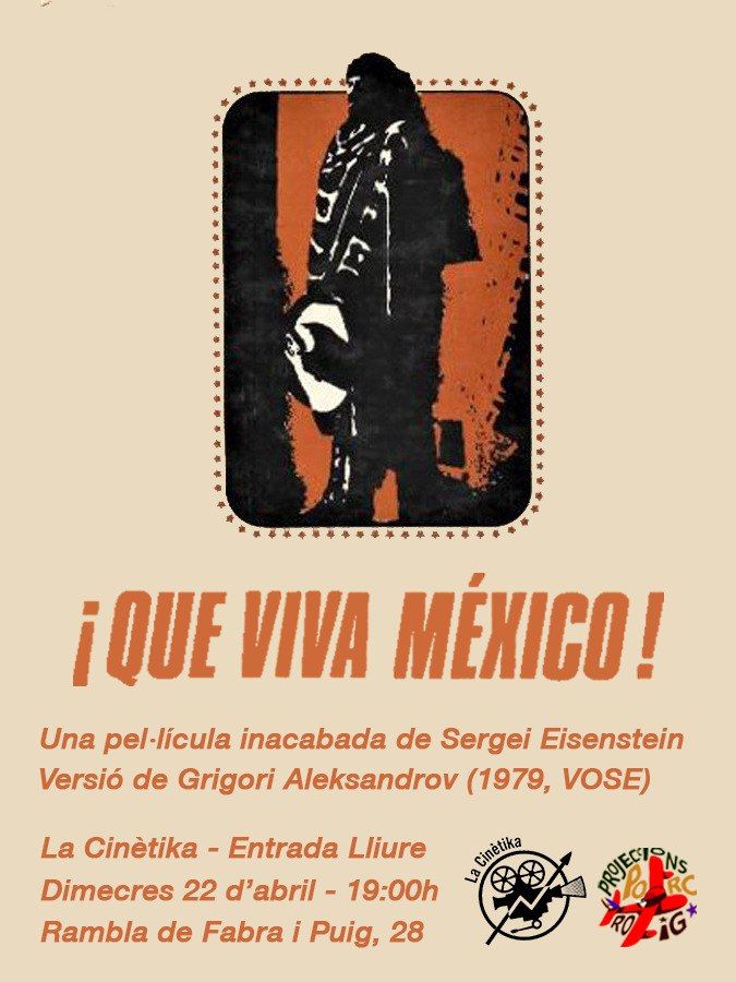El dimecres 22 d’abril a les 19h, Projeccions Porc Roig projectarà ¡Que viva México!, dirigida per Sergei Eisenstein, de 90 minuts de durada, VOSE (1979).