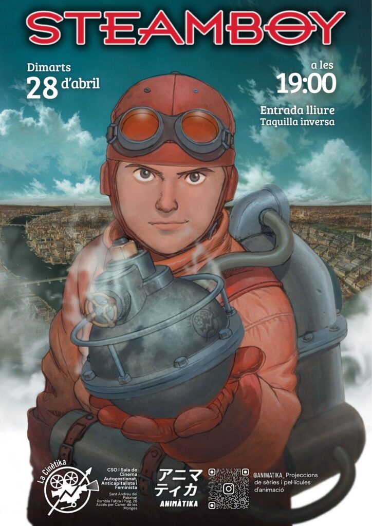 El dimarts 28 d’abril a les 18h, Animàtika projectarà Steamboy, dirigida per Katsuhiro Ôtomo, de 126 minuts de durada, VOSE (2004).