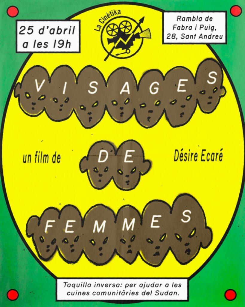 Avui dissabte 25 d’abril del 2026, a les 19:00h, cicle de cinema africà projectarà Visages de femmes, dirigida per Desiré Ecaré, de 105 minuts de durada, VOSE (1985).