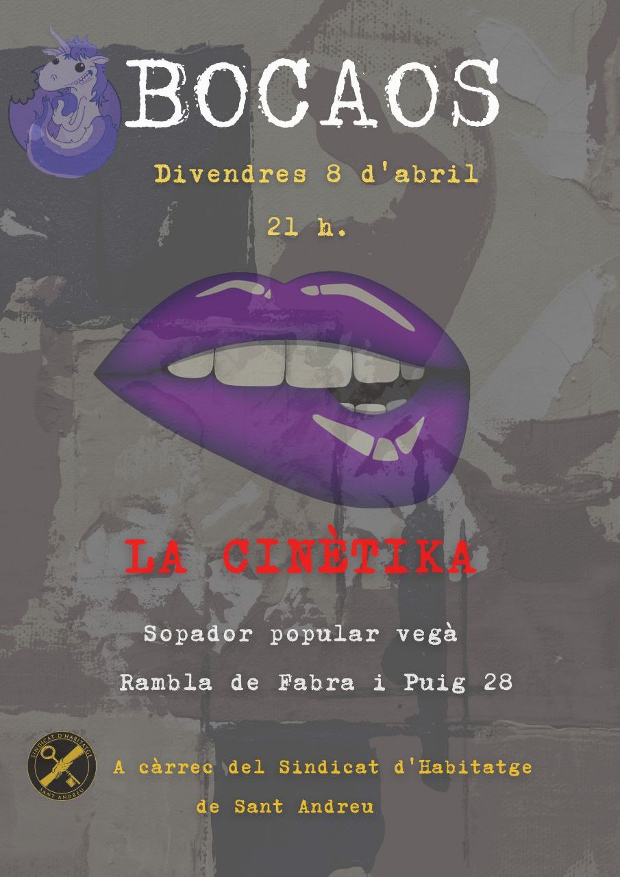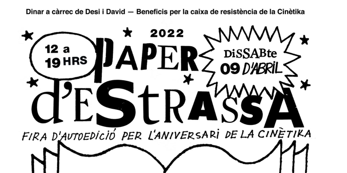 Serà demà dissabte 9 d’abril a les 14h al hall d’entrada en el marc del Paper d’estrassa, la Fira d’autoedició per l’aniversari de La Cinètika. Tot vegà i tot boníssim!