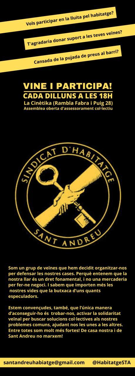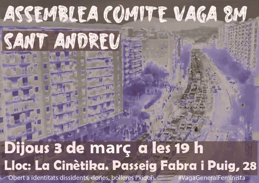 Des del Comitè de Vaga de Sant Andreu us convidem a participar el dijous 3 de març a les 19h a la darrera assemblea oberta, amb motiu del 8 de març d’enguany, que tindrà lloc a la Cinètika. Organitzem-nos per continuar defensant els nostres drets i combatre el patriarcat. Assemblea […]