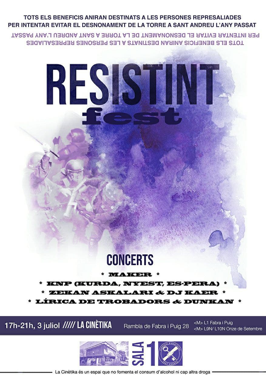 Serà el dissabte 3 de juliol de 17h a 21h a La Cinètika! Al febrer del 2020 els mossos d’esquadra van desallotjar i van deixar al carrer a les tres persones que vivien a La Torre, a Sant Andreu. Com és habitual les veïnes del poble van intentar aturar el […]