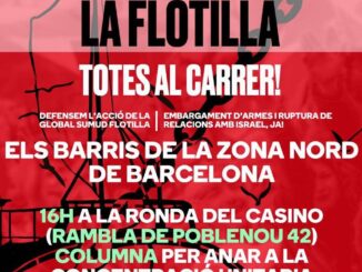 Avui dijous 2 d’octubre els barris i pobles de la Zona Nord de Barcelona ens trobarem a les 16h a la Ronda del Casino (rambla del Poblenou 42) per anar plegadis a la concentració que si farà a les 18h a la plaça de la Carbonera (al final del Paral.lel).