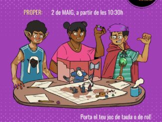 A partir d’ara quedarem per jugar a jocs de taula i jocs de rol els primers dissabtes de cada mes a les 10:30h. Ens trobarem el dissabte 2 de maig a partir de les 10:30h al hall de baix. Ara també ens pots trobar a Mastodon!