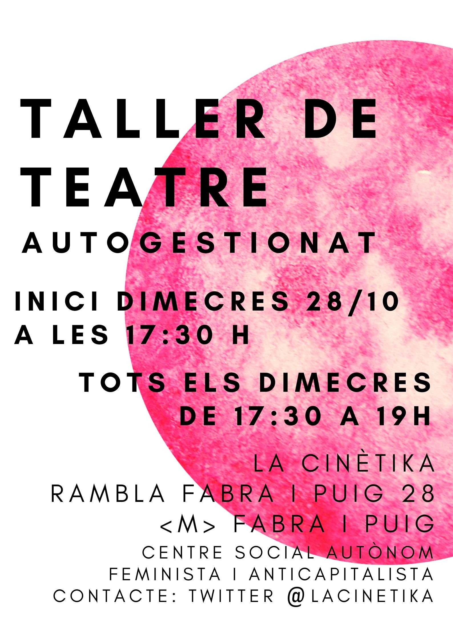 Projecte de teatre en què lxs integrants decidirem el nostre propi guió;) La proposta momentània és que, cada dimecres, una persona alterna porti diferents dinàmiques de teatre pensades. Pots buscar-les per internets, preguntar als col·legues, inventar alguna cosa nova … Però aquesta és només la proposta inicial, potser acabem decidint […]