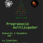 – T’agrada programar? Vine el proper dimecres 3 de desembre a la Cinètika per resoldre en equip els puzzles de programació de l’Advent of Code (https://adventofcode.com/). Aprendrem lis unis de lis altris i ens divertirem!