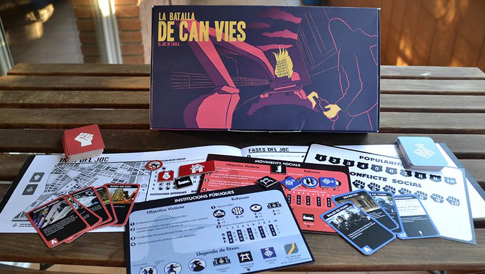 És un joc de taula ambientat en el conflicte que es va viure al barri de Sants i a la ciutat de Barcelona quan es va intentar desallotjar el CSA Can Vies, al mes de maig de l’any 2014.