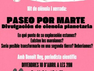 El dijous 10 d’abril a les 20h farem una xerrada divulgativa de ciència planetària: Una passejada per Mart amb Benoît Rey, periodista científic. Contestarem a les preguntes: – En quin punt de la seva exploració estem?– Existeixen lis marcianis?– Serie possible transformar-ho en una segona terra? Ho hauriem de fer? […]