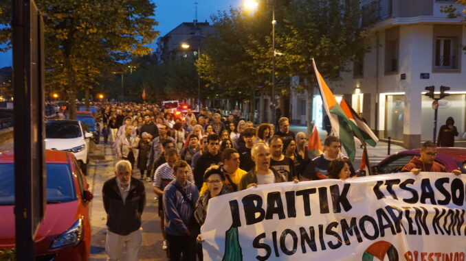 Arratsaldean Orereta Palestinarekin eta Gernika Palestina herri dinamikak deituta manifestazio jendetsua izan zen Oreretan, hemen bukaeran irakurri ziren agiriak eta sindikatuen eguneko balorazioa: