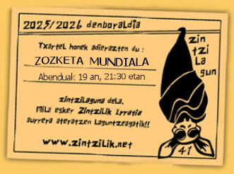Ostiral honetan, abenduaren 19an, 21:30etan. Zuzenean Zintzilik Irratian. Entzun FM 100.0 edo www.zintzilik.net!