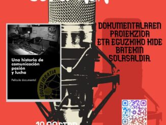 📢 Urtarrilak 16, ostirala 📆19:00 etan 👁 Gaztaño auzoko lokalean Gaztañoko lagunek antolatuta, hurrengo ostiralean 16an, Iruñeko Eguzki Irratiaren historia dokumentala aurkeztu eta ikusteko aukera […]