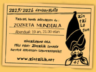 ⚡️ZINTZILIK irratiaren 📻 2025/2026. denboraldiaren aurkezpen jaialdia!! Hona hemen larunbateko 22an programazioaren aurkezpena Niessen aretoan.Mundiala izan zen.Mila esker DJ Art-i, eta Gori Gori eta Lin […]
